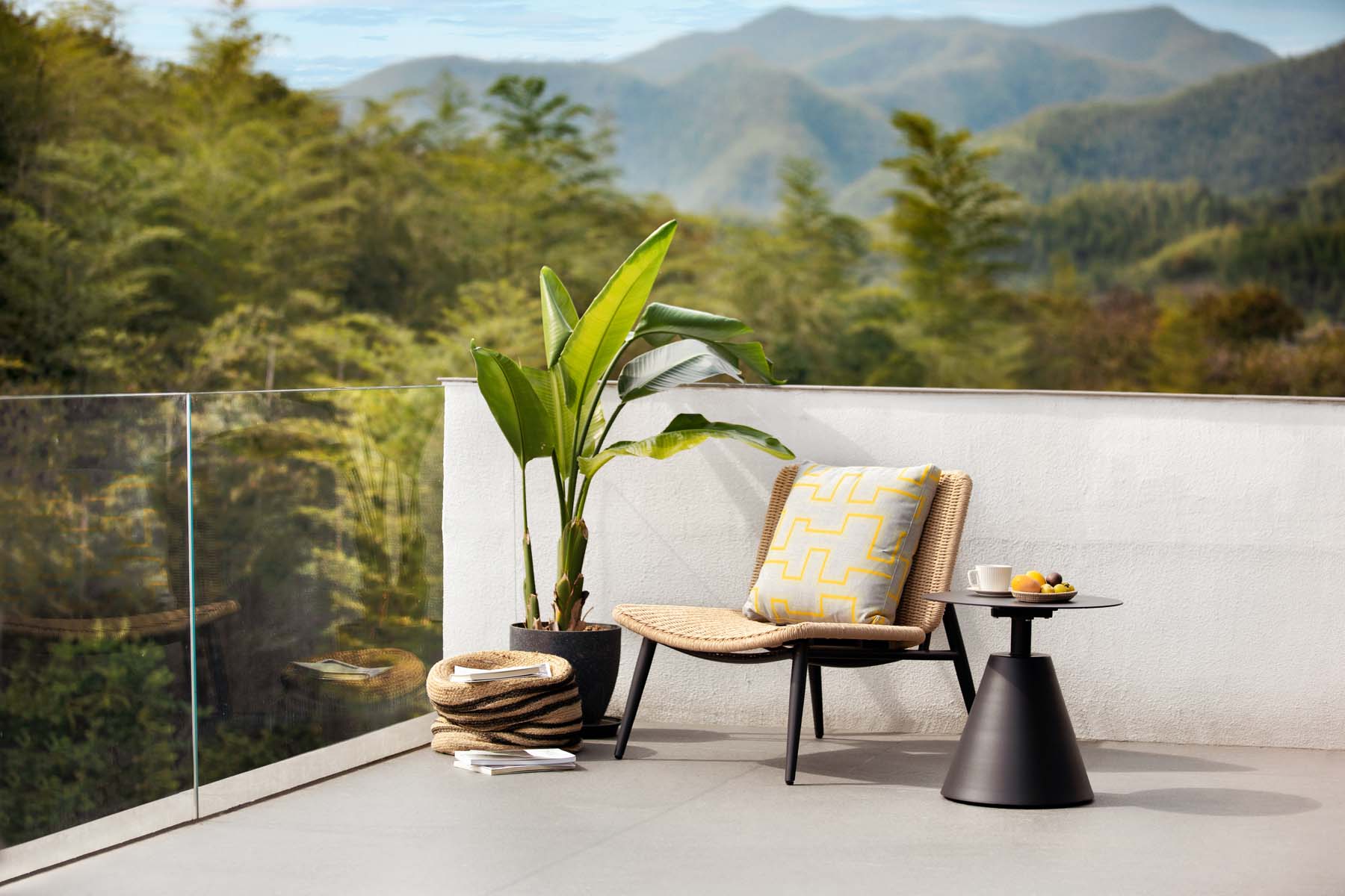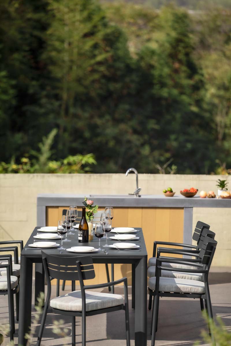 Inspired by the Danish philosophy of form and function, our Soho collection combines contoured hand-woven all-weather wicker with a sleek carbon gray powder-coated finish, offering a sophisticated, minimalistic solution that transforms small outdoor spaces into stylish, comfortable retreats.